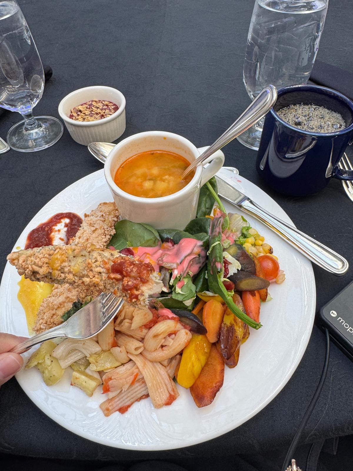 Um dos pontos altos da conferência foi o serviço de refeições em estilo buffet totalmente livres dos nove principais alérgenos: leite, ovos, trigo, peixes, crustáceos, amendoim, nozes, soja e gergelim. Essa atenção ao detalhe garantiu segurança e demonstrou como a inclusão alimentar pode ser colocada em prática.